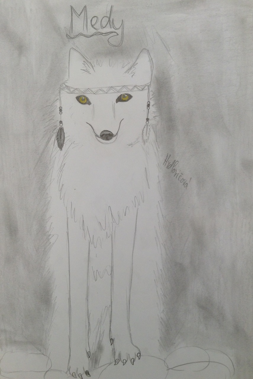životopis: keď som sa narodila moja mama umrela mala som staršieho brata ale po čase nás opustil brata som mala veľmi rada pretože som mu vždy mohla povedať ako sa cítim keď som bola naštvaná, smutná... vždy ma vedel utešiť. Neviem či to bez neho vydržím, no ale budem musieť. S otcom som sa moc nemusela večne sme sa hádali niekedy sme sa aj pobili vždy keď sme sa takto do seba pustili utiekla som do lesa tam som si našla miestečko kde som si ľahla do trávy a trávila zvyšok dňa až kým sa na oblohe neobjavili hviezdy vždy keď vyšli rozsvietili celú oblohu a keď bol spln počúvala som ako ostatný vlci zavýjali. Raz keď som sa od tiaľ vrátila otec tam nebol začala som ho hľadať ale nikde nebol a vtom som pochopila že odyžiel. Spanikárila som všetko okolo mňa sa zastavilo počula som len tlkot môjho srdca aj keď neviem ako ale zaspala som. Ráno keď som sa zobudila bolo všetko úplne inak išla som si niečo uloviť pod zub ale ani som nebola hladná v tom som sa rozbehla so slzami v očiach do lesa ktorý som vôbec nepoznala a v hlave mi stále znel ten istý hlas ktorý mi šepkal že za to môžem ja že môžem za to že otec odysiel že keby že sa s ním stále nehádam bol by tu so mnou vôbec som nevnímala okolie a zrazu som do niekoho narazila bol to vlk asi v mojom veku, bol vysoký a čisto-čierny keď sa na mňa pozrel so svojimi modro-zelenými očami zavrčal na mňa a spýtal sa či sa nepozerám pred seba utekala som ďalej síce neviem prečo ale rozbehol sa za mnou asi po minúte behu na mňa skočil a skotúľali sme sa dolu kopcom keď sme zastavili spýtala som sa prečo to urobil on mi povedal lebo si mi neodpovedala na otázku a chcel som sa ťa spýtať prečo si smutná zavrčala som že nech sa do mňa nestará on mi na to povedal vieš ja som v tom to lese ešte iného vlka nevydeľ spýtala som sa či nemá rodinu povedal že keď sa narodil rodičia po čase umreli a všetko som sa musel naučiť sám v tom som mu skočila do reči a vykríkla som že ja som tiež sama a rodičia mi umreli v tom sme sa zahľadeli jeden druhému do očí a on sa ma spýtal že ako sa volám povedala som že Medy ja som sa ho spýtala to isté a on povedal že Ridien potom mi začal hovoriť že keď si ty sama a ja som sám mohli by sme biť spolu teda ako kamaráti súhlasila som. Na ďalší deň som našla svorku do ktorej som sa išla spýtať či by som nemohla biť v tej svorke spolu s nimi povedala som im čo sa mi stalo súhlasili hneď som to išla povedať Ridienovi a že či tam nepôjde so mnou on povedal že do svorky nechce chodiť že on je radšej sám sľúbila som mu že za ním budem stále chodiť v tedy sme sa prvý krát rozlúčili ale vedela som že sa znovu uvidíme keď som odchádzala v kútiku duše som premýšľala či sa otec vráti a rozhodla som sa že s ho začnem hľadať.